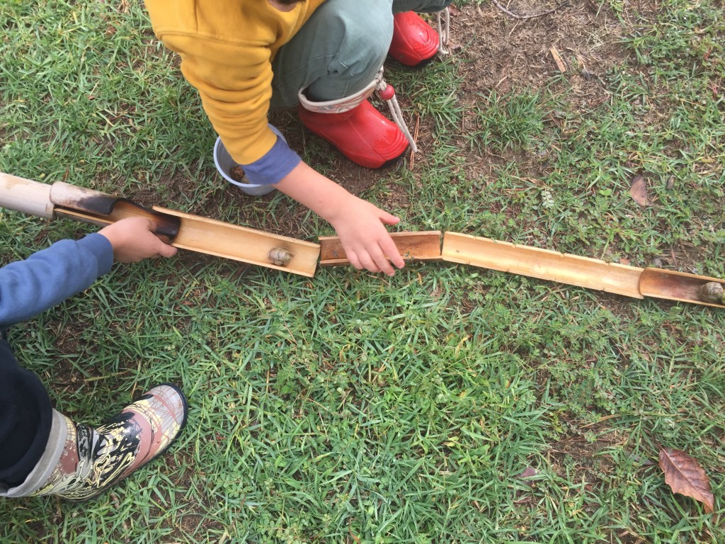 Per tanto tempo abbiamo tenuto i pezzi di bamboo in uno scaffale nell’armadio, non ci veniva in mente che cosa i bambini ci avrebbero potuto fare. Invece, appena li abbiamo messi a disposizione i progetti e le idee di sono moltiplicati.