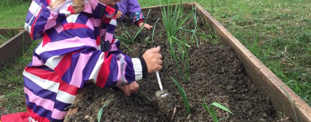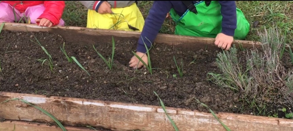 Alla terra argillosa del luogo abbiamo mescolato del terriccio. Scavare, togliere le radici, trovare sassolini sono attività che piacciono moltissimo ai più piccoli. Ma entusiasma molto anche annaffiare, fare delle fossette per le semine, fare le buche per i trapianti.