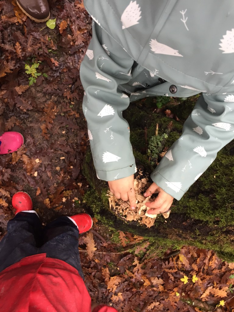 Per fare l’albero andiamo nel bosco a cercare un albero secco. Una bella occasione per incontrare la terra, le foglie, l’umidità ed il profumo di terriccio. Il nostro albero è un ramo secco individuato nelle passeggiate dei mesi precedenti.