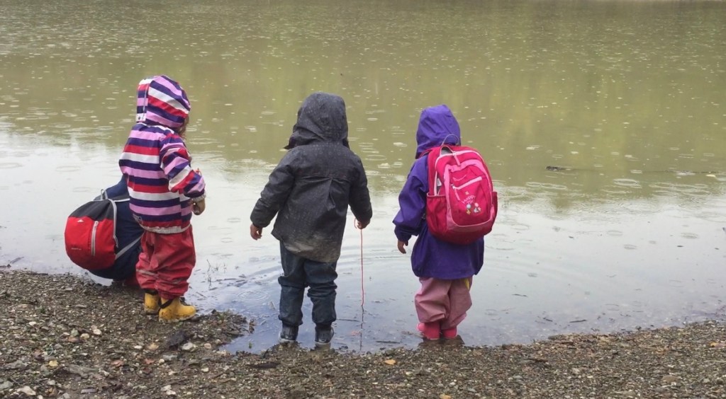 Le piccole gocce di pioggia formano nel lago disegni cerchiati. Che pace.