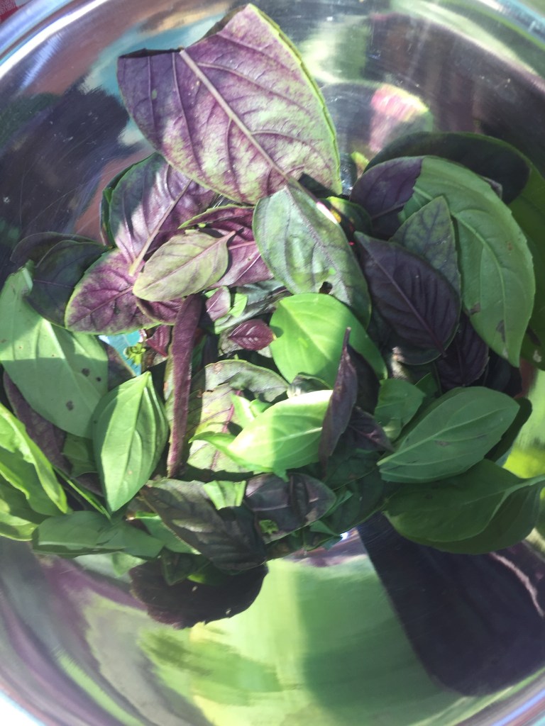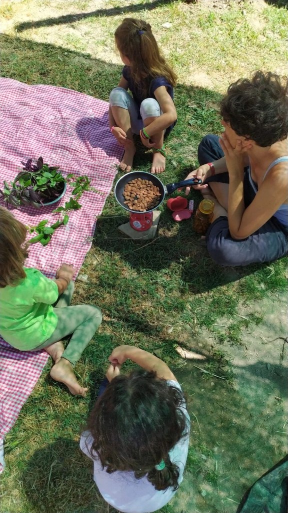 Basilico Con il basilico del nostro orto facciamo il pesto, lo mescoliamo con le mandorle. Tostando le mandorle.